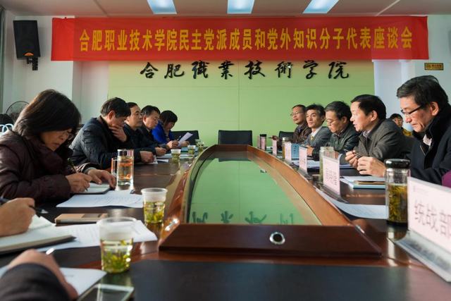 此次座談會(huì)的主題是:深入貫徹落實(shí)十八屆六中全會(huì)精神,圍繞學(xué)院安徽省地方技能型高水平大學(xué)建設(shè)、全國優(yōu)質(zhì)專科高等職業(yè)院校建設(shè)、“一校兩區(qū)”建設(shè)等方面談建議、談想法。