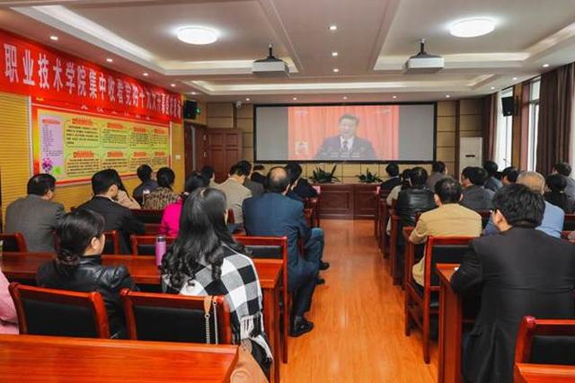 觀看結束后,校黨委書記羅兆好要求各黨總支、支部,各單位在會后要認真組織學習研討宣傳黨的十九大精神,以黨的十九大精神武裝頭腦、凝聚共識、堅定信仰,樹牢“四個意識”,堅定“四個自信”,自覺把十九大報告中的新部署新要求和習近平總書記治國理政新理念新思想新戰略轉化為謀劃地方技能型高水平大學和全國優質校建設的新思路;轉化為提升教育教學質量、深化教育教學改革的新路徑;轉化為凝心聚力、干事創業、加快發展的新動力;轉化為全面從嚴治黨、加強黨的建設的新舉措,切實做到內化于心,外化于行。