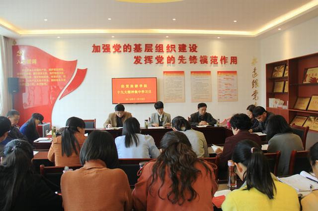 為全面深入學習宣傳貫徹黨的十九大精神,用黨的十九大精神武裝頭腦、指導實踐、推動工作,根據學校黨委的統一部署,11月15日下午,beat·365在全校范圍內開展了黨的十九大精神集中學習日活動。全體教職工以直屬分黨委和各黨總支為單位,集中學習了黨的十九大報告——《決勝全面建成小康社會奪取新時代中國特色社會主義偉大勝利》以及《中國共產黨章程(修正案)》。