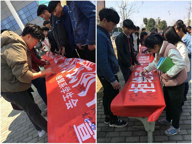 本次活動得到了學院領導、老師、同學們的大力支持,中午11點半后,前來就餐的廣大師生在宣傳橫幅上鄭重簽名,踐行“光盤行動”。志愿者們向全院師生發出倡議:鼓勵厲行節儉,堅決杜絕浪費;樹立“浪費可恥、節約光榮”的理念,努力做到按需選餐,不剩菜,不剩飯,做“光盤一族”,用實際行動踐行雷鋒精神。